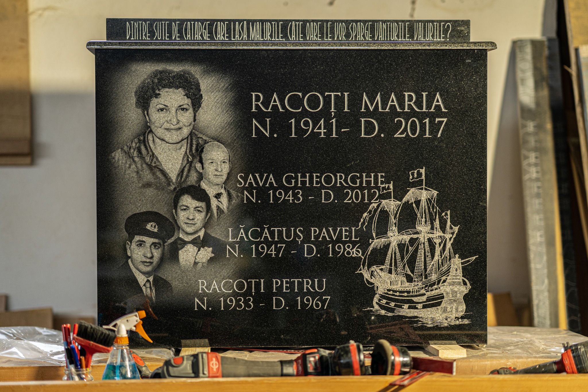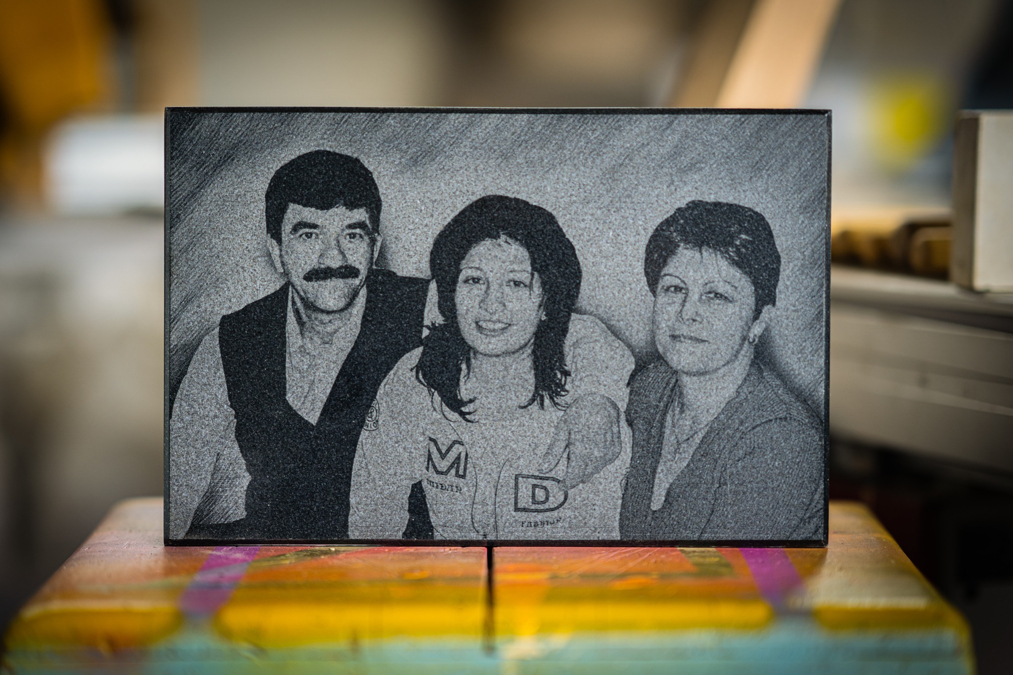 Fotogravura în piatră este procedeul prin care, prin mijloace mecanice sau manuale, se gravează fotografii pe suprafața pietrei. De cele mai multe ori, se realizează pe piatră neagră, folosindu-ne de contrastul puternic rezultat dintre suprafața șlefuită și gravură.